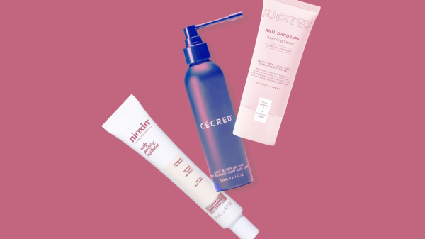 Image contains a collage of dandruff treatment products on a pink backgroundCollage: Paula Balondo; Source images: Courtesy of brandsSave StorySave this storySave StorySave this story